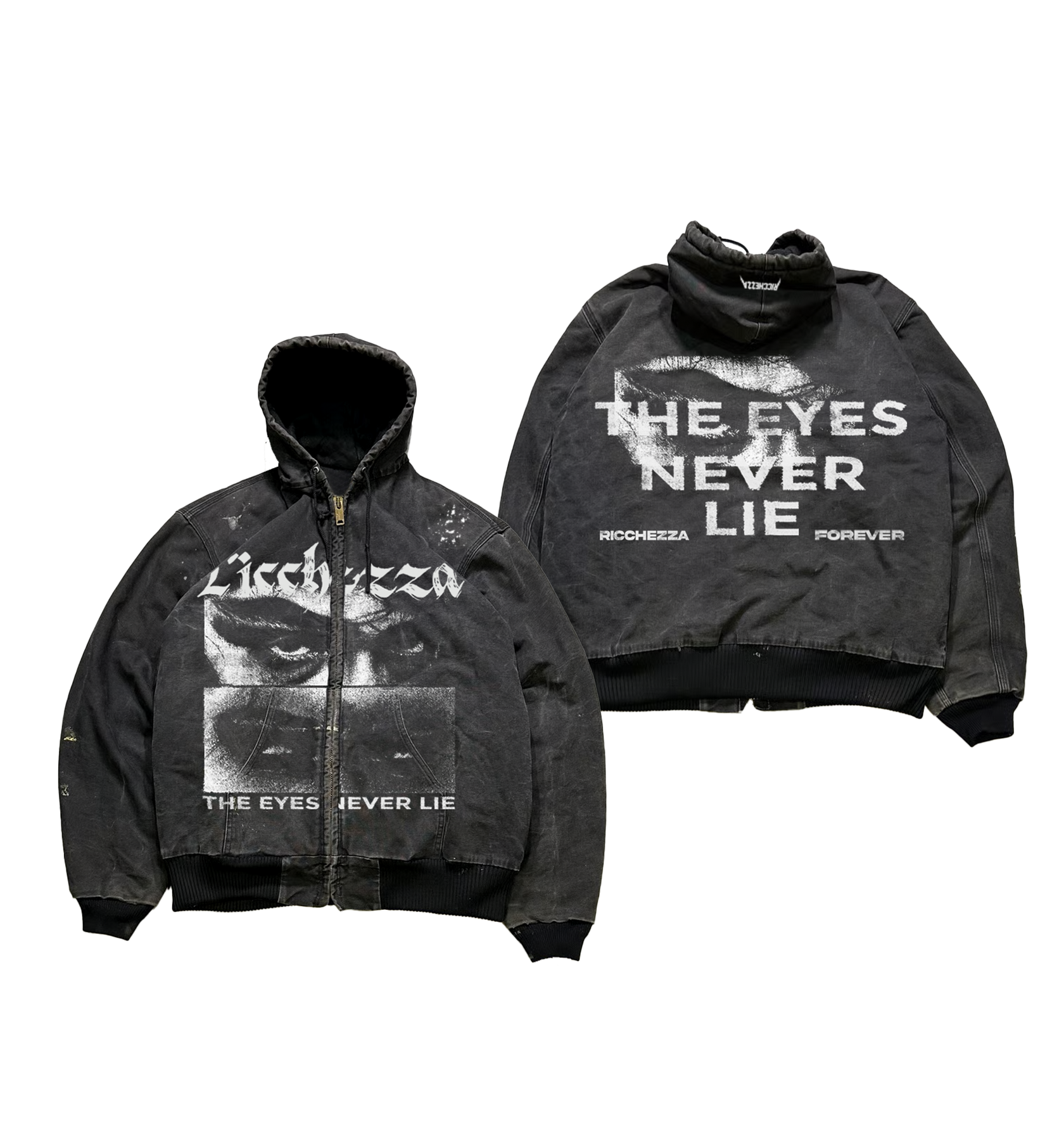 Printed Ricchezza "Eyes Never Lie" graphic on the back