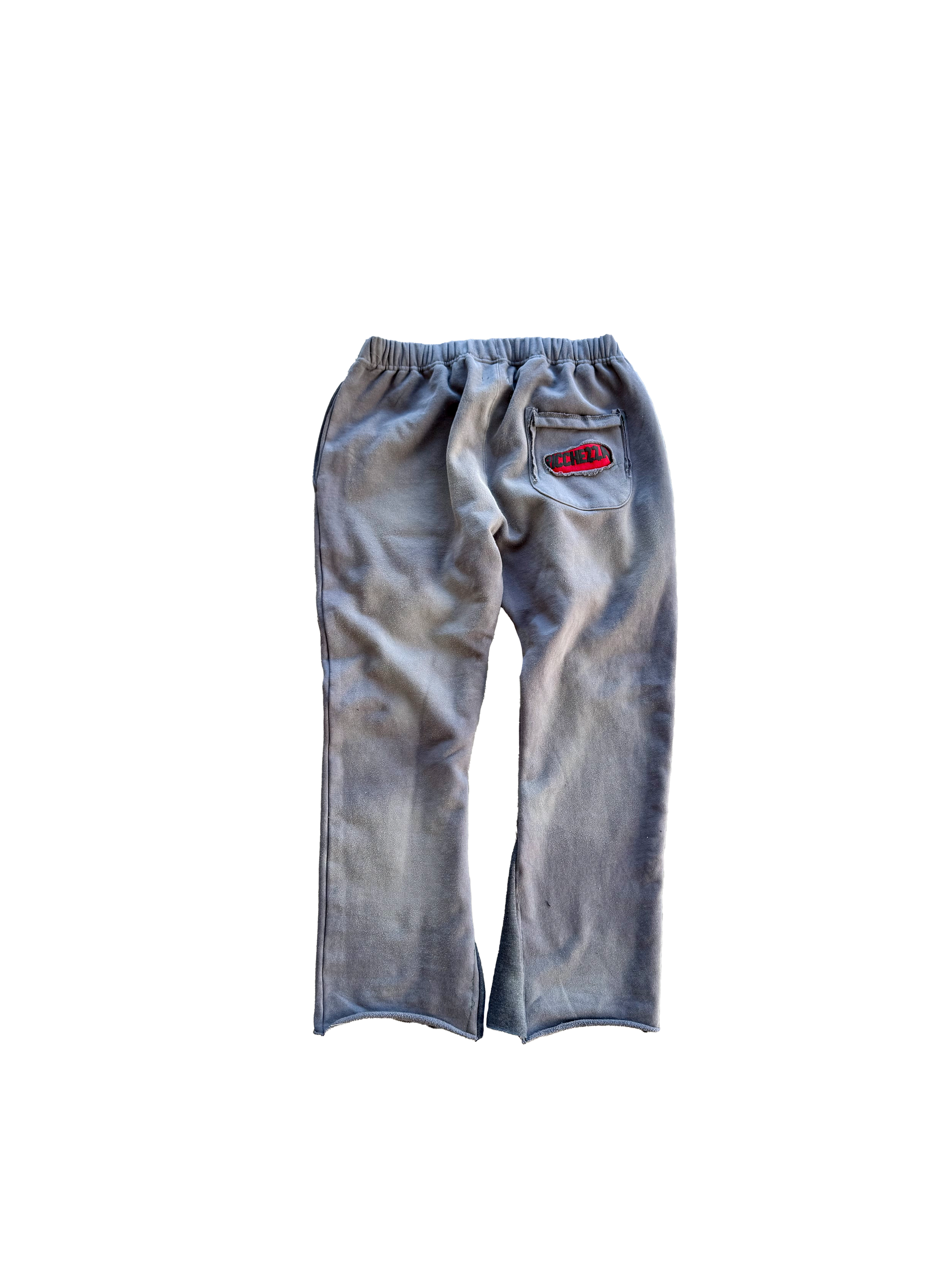 Each patch pulled from past drops and reborn into a new identity. These hand-altered sweatpants features distressed detailing, splattered accents, and layered appliqués stitched across a sun-washed charcoal base. Every hoodie carries different cutouts and placement, making no two alike