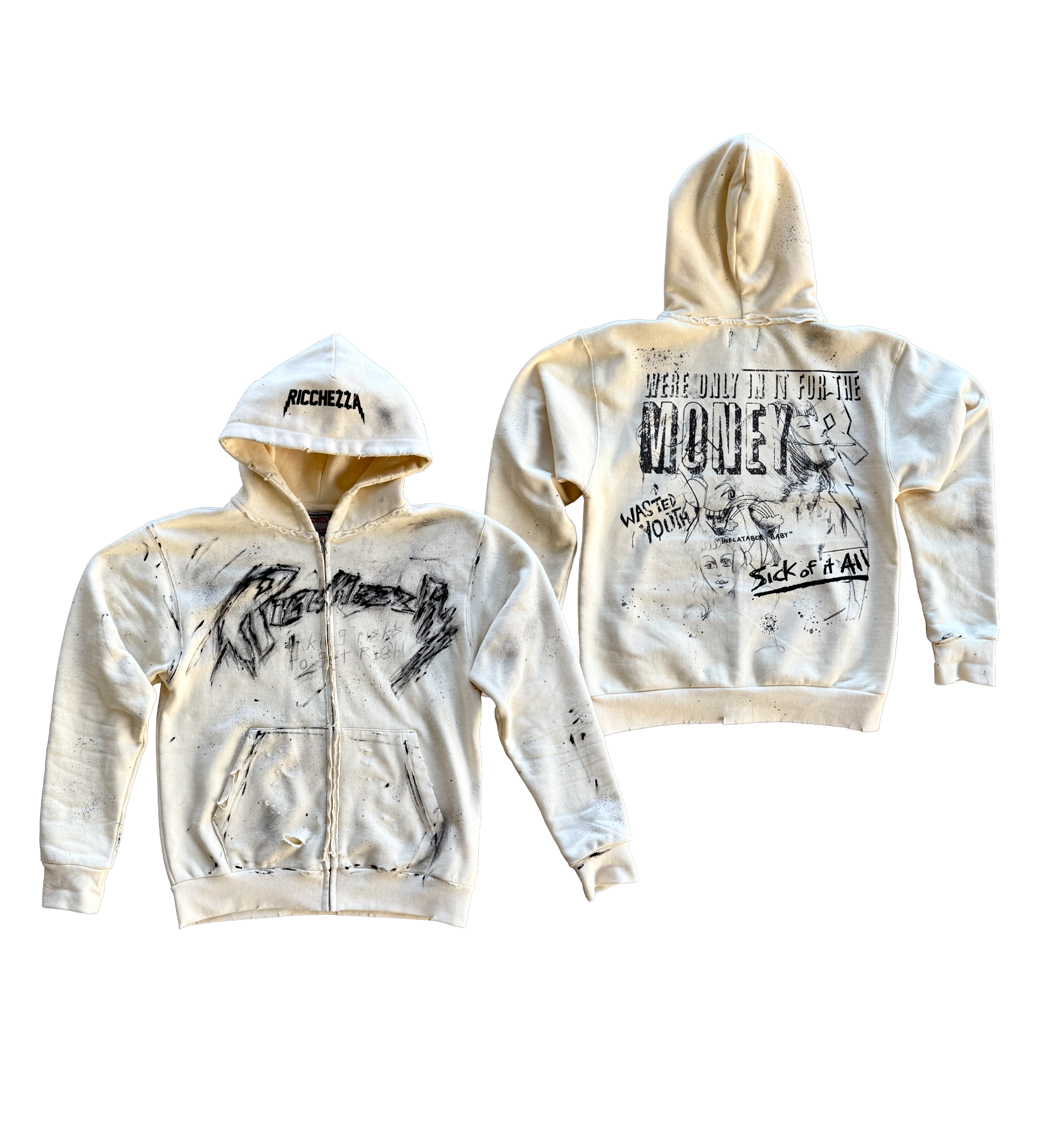 Hand printed RICCHEZZA logo print on the top front hood